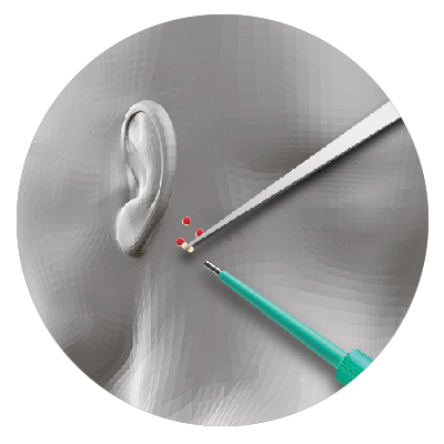 Sterilise the skin behind the ear (or near the groin) before applying a local anaesthesia. Take a minimum of three 2mm skin grafts from the area.