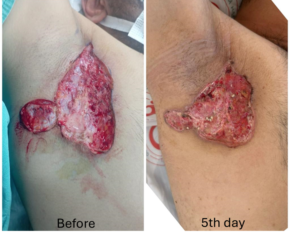 The images below illustrate the improvements in non-healing wounds following Dermomine treatment. These visual results highlight the effectiveness of advanced micrograft techniques in promoting recovery and skin regeneration.